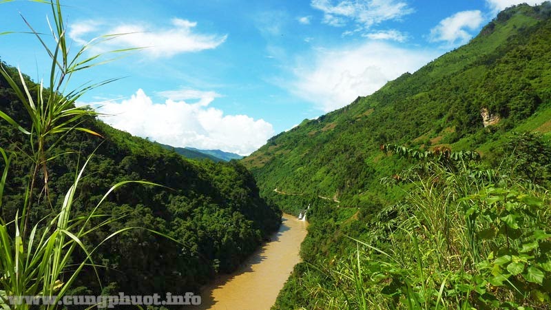Từ trên cao nhìn xuống phong cảnh núi rừng Mường Nhé giống như một bức tranh đẹp và rất có hồn. Pha lẫn trong màu xanh lục của cây rừng, màu vàng của hoa cúc quỳ cùng với màu vàng đỏ của những đoạn đường chưa được rải nhựa, trên những nếp nhà sàn, nhà lá, có kích cỡ to nhỏ khác nhau nằm rải rác bên vệ đường, ven suối và lẫn cả trong những lùm cây rậm rạp, um tùm, thấp thoáng xa xa là những ngọn núi nhấp nhô lượn sóng nối tiếp nhau cùng đua dưới ánh mặt trời.